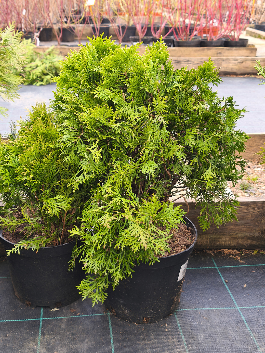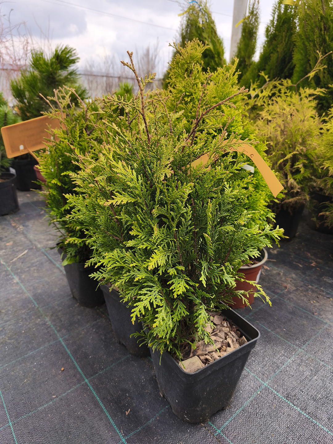 большой выбор хвойных и лиственных кустарников;